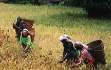 We have a gradual climb through small terraced fields, past farmhouses into dense forest. This is a particularly good day for the bird-watchers and those interested in flowers. In the winter the daphne is in bloom and its scent hangs in the trees. In the spring the rhododendron and orchids are in bloom. Views of the Annapurnas are also excellent. At the end of the day's climb, we camp in a small clearing in the forest next to a stream.