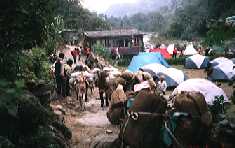 We descend steadily to Tirkhedunga (1,524m) where we lunch. On the way down we join the main trail from Tibet and we constantly meet mule trains laden with goods. The traders are Tibetans, Khampas, Mustang peoples and the tea houses along the route are mostly run by Thakalis. We sometimes meet Hindu priests and pilgrims. We reach Modi Khola and camp on its banks.